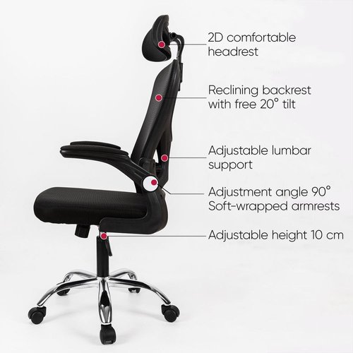 The Deli Multifunction Ergonomic Office Chair in sleek black is designed to provide superior comfort and support for long working hours. Featuring an adjustable headrest, lumbar support, and a contoured backrest, this chair promotes proper posture and reduces back strain. The high-density foam seat cushion ensures long-lasting comfort, while the breathable mesh back enhances airflow to keep you cool throughout the day. Equipped with a tilt and lock mechanism, height-adjustable armrests, and smooth-rolling casters, it offers personalized adjustments to fit your workspace needs. Its modern, minimalist design blends seamlessly into any office or home environment, making it an excellent choice for both productivity and style.