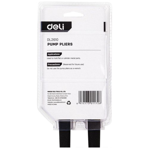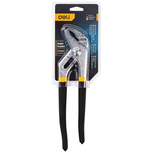 The Deli Pump Pliers 10" are a versatile and durable hand tool designed for gripping, bending, and cutting with precision. Featuring a high-leverage design and an adjustable pivot point, these pliers provide a strong grip on various materials, making them ideal for plumbing, electrical work, and general repairs. The ergonomic, non-slip handles ensure comfort and control, while the hardened steel construction offers long-lasting durability. With a 10-inch size, they provide optimal leverage for tough tasks while remaining compact enough for easy handling.