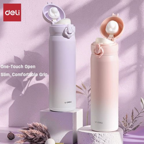 The Deli Stainless Steel Water Thermal Bottle (500ML) is designed to keep your beverages at the ideal temperature for extended periods. Crafted from premium, food-grade stainless steel, it offers exceptional durability, rust resistance, and safety. The double-wall vacuum insulation technology retains heat for up to 12 hours and keeps drinks cold for up to 24 hours. Its lightweight, compact design makes it perfect for home, office, gym, or travel use. The leak-proof lid ensures worry-free transportation, while the wide mouth allows easy filling, drinking, and cleaning. Available in a sleek, modern design, it combines functionality and style for everyday convenience.