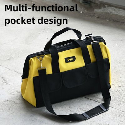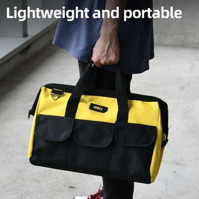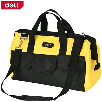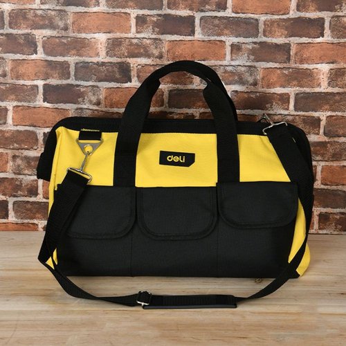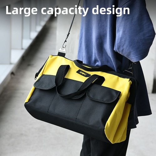 The Deli Tool Bag (40×20×27cm) is a rugged and spacious storage solution designed for professionals who need reliable organization and portability on the job. Made from durable, wear-resistant Oxford fabric, this heavy-duty tool bag features a reinforced base for enhanced load-bearing capacity and protection against rough surfaces. Multiple internal and external pockets provide ample space to neatly organize hand tools, accessories, and small hardware, while the wide zippered opening ensures quick and easy access. The bag is equipped with a comfortable padded shoulder strap and reinforced handles, making it ideal for electricians, technicians, and DIY enthusiasts who need to carry tools between job sites.