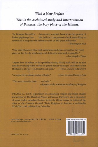 "In BANARAS, Diana Eck . . . has written a notable book about this greatest of Indian pilgrimage sites. . . . Her brilliant, comprehensive book seems likely to remain for a long time the definitive work on this great Indian city".--WASHINGTON POST. 61 photos. 7 maps.