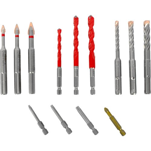 The Drill-Screwset Kit 13 13 PCS C Prot, Multi 6-Kant, SDS-Plus Force X4 Bit is a comprehensive set of 13 drill bits and screwdrivers, ideal for both drilling and screwing tasks.