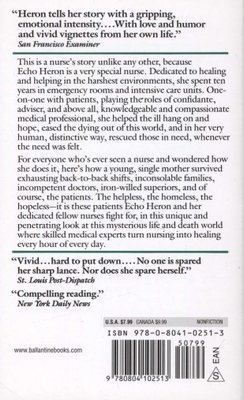 This is a nurse's story unlike any other, because Echo Heron is a very special nurse. Dedicated to healing and helping in the harshest environments, she spent ten years in emergency rooms and intensive care units. Her story is unique, penetrating, and unforgettable. Her story is real.