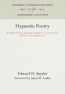 Hypnotic Poetry - A Study of Trance-Inducing Technique in Certain Poems and Its Literary Significance (Hardcover, Reprint...