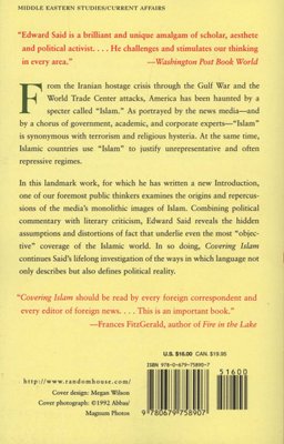 From the Iranian hostage crisis through the Gulf War and the bombing of the World Trade Center, the American news media have portrayed "Islam" as a monolithic entity, synonymous with terrorism and religious hysteria. In this classic work, now updated, the author of Culture and Imperialism reveals the hidden agendas and distortions of fact that underlie even the most "objective" coverage of the Islamic world.