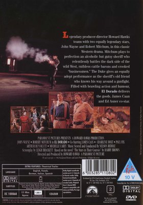 Producer-director Howard Hawks teams up with legendary stars for this drama set in postCivil War Texas, the second in the trilogy the director's easy going westerns starring John Wayne, which also included Rio Bravo and Rio Lobo. Robert Mitchum plays the alcoholic sheriff who fights greedy cattlemen and empire builders as he tries almost single-handedly to tame the West. Wayne is Mitchum's old-friend-turned-gun-fighter who comes to town, while James Caan offers an eccentric and likeable performance as a youthful gunslinger. With broad strokes of humour, Hawks works a familiar terrain with the western he-men, who manage to help Mitchum rid the town of it's unsavoury characters.
