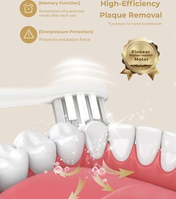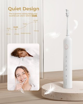 - 55dB, Quieter Experience - Equipped with a high frequency vibration magnetic levitation motor that moves quickly to keep things quiet when brushing. In addition, it has a solid casing made of premium material that help kill sound.