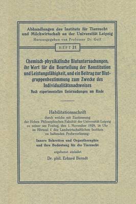 Chemisch-Physikalische Blutuntersuchungen, Ihr Wert Fur Die Beurteilung Der Konstitution Und Leistungsfahigkeit, Und Ein Beitrag Zur Blutgruppenbestimmung Zum Zwecke Des Individualitatsnachweises - Nach Experimentellen Untersuchungen Am Rinde (German, Paperback, 1929 ed.)