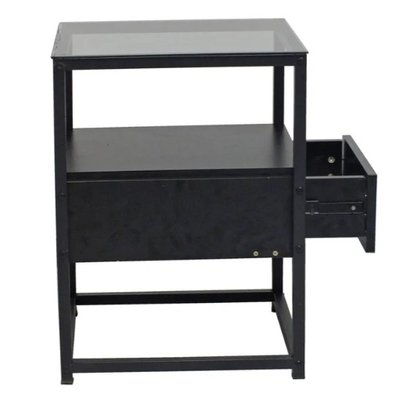 Add a touch of modern industrial style to any room with this sleek black square side table. Featuring a sturdy metal frame with powder-coated legs, a black MDF drawer, and a clear tempered glass top, it’s perfect for holding everything from lamps and magazines to pot plants or coffee mugs. Lightweight, easy to assemble, and low-maintenance with a simple wipe clean, this versatile table works beautifully in the bedroom, lounge, study, office, patio, or even bathroom. Its minimalist design, durable construction, and trendy industrial aesthetic make it a stylish and functional addition to any space.