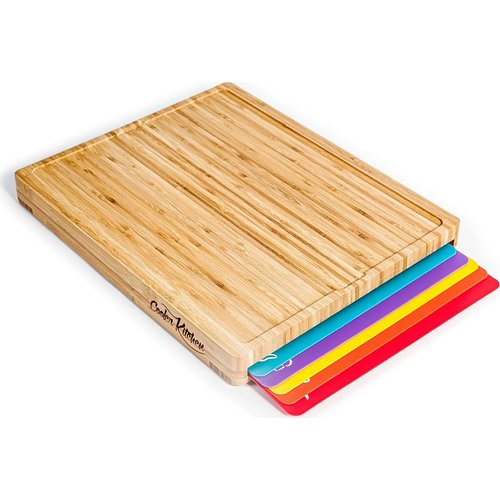 Our bamboo cutting board holder set is crafted with love from high-quality bamboo, these chopping boards are not only eco-friendly but also durable and gentle on your knives. Versatile and Complete: Our color coded plastic cutting boards for kitchen includes everything you need for seamless meal prep - Our mats are sturdy and durable while still maintaining their flexibility.