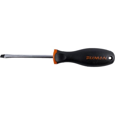 The Fixman Slotted Screwdriver 6.5x1.2x100mm is a high-quality hand tool designed for precise slotted screwdriving. The 6.5mm blade width, 1.2mm blade thickness, and 100mm length provide a perfect balance of strength and reach for various tasks. Made from durable chrome vanadium (CRV) steel, the blade offers excellent corrosion resistance and long-lasting performance. The ergonomic handle is designed for comfortable use, reducing hand fatigue during extended use, while providing a secure grip for better control and torque. This screwdriver is ideal for both professional and DIY use, perfect for working with slotted screws in a wide range of applications.