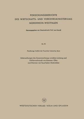 Untersuchungen Des Zusammenhangs Zwischen Leistung Und Kohlenverbrauch Von Kammer-OEfen Zum Brennen Von Feuerfesten Materialien (German, Paperback, 1954 ed.)