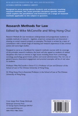 Designed to serve as a handbook for research methods courses with its coverage of the principal research traditions, the book will also appeal to students of related disciplines who have an interest in legal issues including those from criminology, sociology, psychology, government, politics and social administration. The rich mix of general lessons, theoretical engagement and practical examples will be of real value to students.