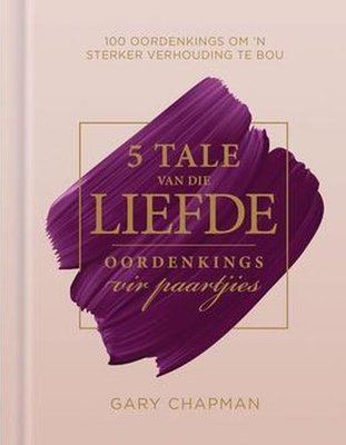 Konflik in verhoudings spruit dikwels nie uit ’n gebrek aan liefde nie, maar omdat paartjies nie dieselfde liefdestaal praat nie. 5 Tale van die liefde – oordenkings vir paartjies is die perfekte boek vir paartjies wat weer hulle liefde vir mekaar wil ontdek. Of hulle verhouding sterk en stabiel is en of hulle sukkel om mekaar te verstaan, elke paartjie in enige fase van hulle verhouding sal baat vind by hierdie 100 oordenkings. Dit sal hulle help om opnuut balans te vind in sake soos finansies, kommunikasie, gebed, en dit sal hulle help om mekaar se liefdestale te ontdek