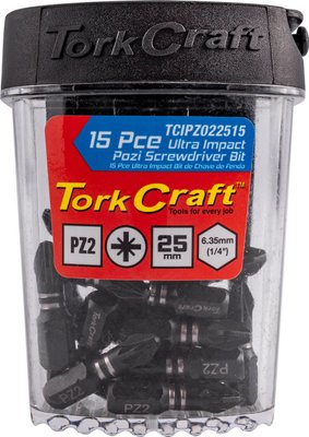 The Impact Pozi #2 x 25mm Insert Bit (15pcs in a Tic Tac Case, PZ2) is a set of durable insert bits designed for use with impact drivers. The "PZ2" refers to the PoziDrive #2, which is a specific type of drive designed to provide better grip and reduce cam-out when driving screws, especially in construction and woodworking. The 25mm length is ideal for reaching into various depths while driving screws. The set contains 15 bits, conveniently stored in a compact Tic Tac-style case for easy access and organization. These bits are perfect for high-torque applications and heavy-duty tasks.