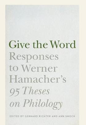 Give the Word - Responses to Werner Hamacher's "95 Theses on Philology" (Hardcover)