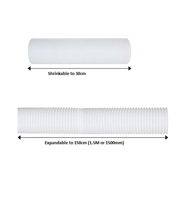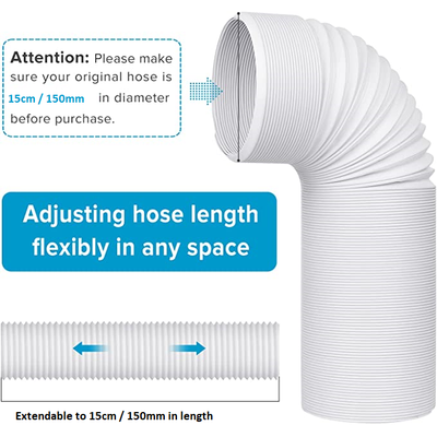 ADJUSTABLE LENGTH: Our air conditioner hose has good telescopic function and flexibility. The shortened length of the hose is 30 centimetres. You can extend the hose up to 150cm/1500mm/1.5 Meters. At home or in the office, our flexible, extendable portable air conditioning hose fits into any space. Please make sure the size is correct for the unit you are purchasing the portable aircon pipe for, some other models may not work due to the sizing. Please make sure it is the correct size Portable Air conditioner Exhaust Hose.