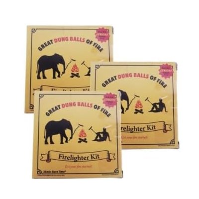 Eco-friendly elephant dung firelighters that burn for a long time! Do your bit for the environment! Our patented eco-friendly firelighters are manufactured with 100% African bush elephant dung, burn up to 45 minutes long, and burns about 30cm high; perfect for your next braai or bonfire. It is the longest burning firelighter on the South African market today and can set even the hardest of hardwoods alight using just one burning ball. This firelighter is different in that it is eco-friendly, it has a great aroma, and has many medicinal properties. This is a unique product. Our eco-friendly firelighters come in 4x individually wrapped plastic sleeves per box. The plastic can be burnt with the ball so that the customer does not have to touch the actual product.