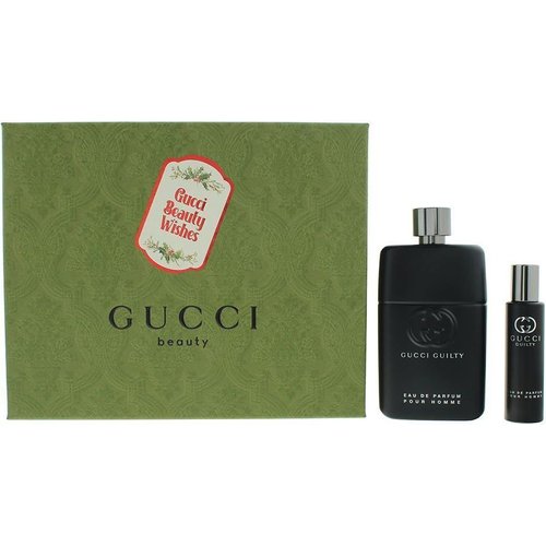 This 2-piece gift set of Gucci Guilty Pour Homme features a 90ml eau de parfum and a 15ml eau de parfum. Developed by industry experts, the top notes include a fresh rose accord, hot chilli pepper, and red pepper. The heart notes feature orange blossom absolute, neroli, and French lavender, while the base notes reveal patchouli and cedarwood, creating a captivating scent for men.