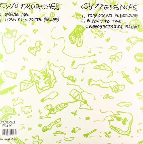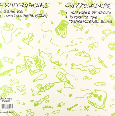 Gutternsipe and Cuntroaches are two collectives operating on the slimy, rotten edge of the world. After a European tour, both bands decided to go into studios in their respetive home towns - Berlin for Cuntroaches and Leeds for Guttersnipe - and document where they were. Across four tracks they individually map out the end of the world and the forging in fire and dirt of a new one.