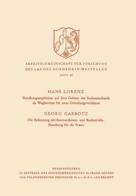 Forschungsergebnisse Auf Dem Gebiete Der Bodenmechanik ALS Wegbereiter Fur Neue Grundungsverfahren. Die Bedeutung Der Baumaschinen- Und Baubetriebs-Forschung Fur Die Praxis (German, Paperback, 1958 ed.) Loot Price: R1,478