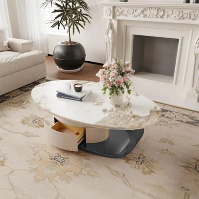 Expertly crafted with a sleek and captivating oval shape, this coffee table features a top-quality sintered stone surface that is perfect for modern homes. Not only is the sintered stone surface incredibly durable for everyday use, but it also offers maximum comfort for your relaxation needs. In addition, the cleverly designed table includes a built-in storage space for effortlessly organizing all your living room essentials. Elevate the aesthetic appeal of your living space with this stylish and functional coffee table.