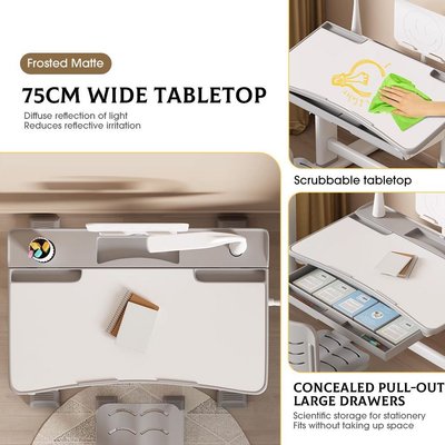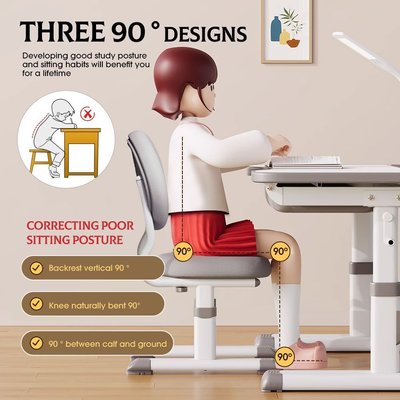 Ergonomic Comfort Tiltable Desktop The tiltable desktop allows your child to customize the angle(0~60 ) of their study surface, promoting a healthy posture and reducing strain on their neck and back. It's a fantastic feature that ensures optimal comfort during long study sessions.