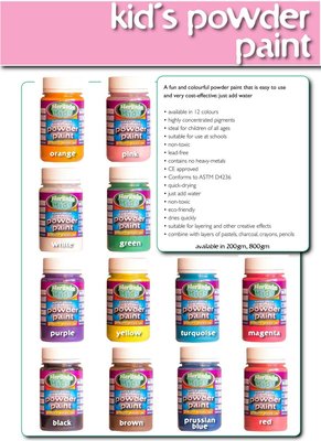 A fun and colourful powder paint that is easy to use and very cost-effective: just add water. Available in 12 colours.