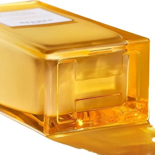 The straight lines of the bottle are embellished with a radiant yellow,