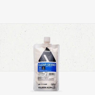 Holbein Clear Acrylic Gesso is a high-quality and versatile translucent painting ground. It can be used as a traditional underpainting on all surfaces, including canvas, paper, cloth, wood, stone, and primed metal.