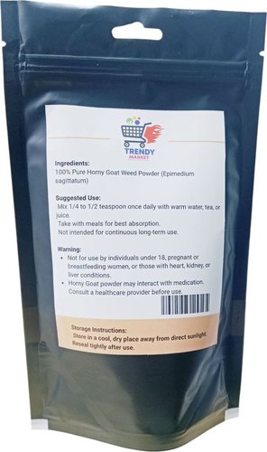 This is a herbal food supplement and is not intended to diagnose, treat, cure, or prevent any disease. Consult your healthcare provider before use, especially if you are pregnant, nursing, on medication, or have a medical condition. Horny Goat Weed may have stimulating effects. Avoid use if you have a heart condition or are sensitive to stimulants.
