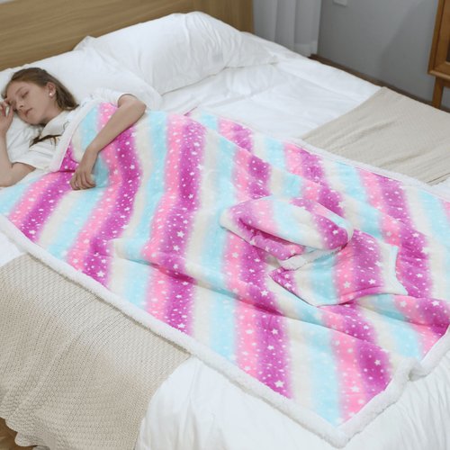 1 x Iconix Kids 2-in-1 Hooded Poncho Blanket (Pink & Blue)