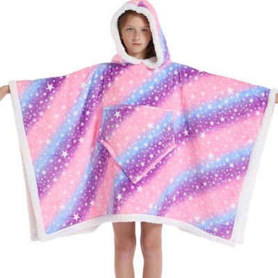 Keep the kids snuggly and warm with our awesome hooded poncho blanket. Perfect for the cold season or to be worn around the home.