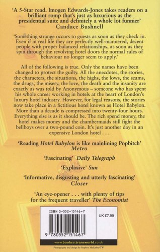 The hotel business is a licence to print money - not only for the managers, owners and shareholders, but for the people who work there. From chambermaids' tips, to doormen making pound]2,000 a week, to the concierge taking backhanders - everyone in the hotel trade is on the make. The hotel business is a licence for the guests to steal - anything from fridges, furniture, plasma TVs, carpets, loo seats, bathrobes, ashtrays, teaspoons - even re-filling the vodka bottle in the mini-bar with water. The hotel business is a licence for guests to behave badly - from rent boys and girls by the hour, to pound]800 on telephone porn bills, pound]24,000 room parties, drugs, dead sheep, splashing out on pound]5,000 bottles of wine, guests falling through windows, naked guests, drunken guests and guests who have to be sectioned. The hotel business is also a licence for celebrity to reign supreme - from Michael Jackson's Evian bath to Madonna's odd curtain fetish, Kate Moss and Johnny Depp's parties, Princess Diana's taste for oysters, Pamela Anderson's sexual gymnastics, the Queen Mother's chips and Prince Phillip's Silver Bullet cocktail. tragedies, the miseries, the decadence and the debauchery of the ultimate service industry - where money not only talks, but gets you the best room, the best service, and also entities you to behave in any way you please...