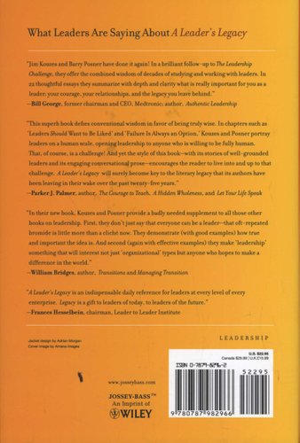 "This superb book defies conventional wisdom in favor of being truly wise. In chapters such as 'Leaders Should Want to Be Liked' and 'Failure Is Always an Option, ' Kouzes and Posner portray leaders on a human scale, opening leadership to anyone who is willing to be fully human. That, of course, is a challenge! And yet the style of this book--with its stories of well-grounded leaders and its engaging conversational prose--encourages the reader to live into and up to that challenge. A Leader's Legacy will surely become key to the literary legacy that its authors have been leaving in their wake over the past twenty-five years."