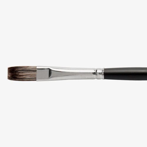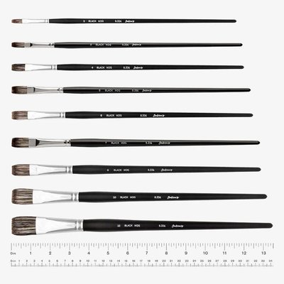 These black bristle hog brushes are truly beautiful. Similar in look to the black sable but with slightly stiffer hair and considerably less expensive. These natural hair brushes have the softness, touch, spring and control of a top quality brush. Interlocked hair, silver-coloured ferrule and matt black handle.