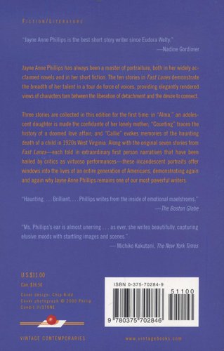 Three stories are collected in this edition for the first time: in "Alma," and adolescent daughter is made the confidante of her lonely mother; "Counting" traces the history of a dommed love affair; and "Callie" evokes memories of the haunting death of a child in 1920's West Virginia. Along with the original seven stories from Fast Lanes--each told in extraordinary first person narratives that have been hailed by critics as virtuoso performances--these incandescent portraits offer windows into the lives of an entire generation of Americans, demonstrating again and again why Jayne Anne Phillips remains one of our most powerful writers.