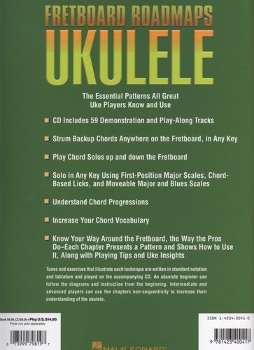 (Fretted). Take your uke playing to the next level with this great package that will teach you how to: strum backup chords all over the fretboard, in any key; play chord solos up and down the fretboard; solo in any key using first-position major scales, chord-based licks, and moveable major and blues scales; understand chord progressions; increase your chord vocabulary; and more. Tunes and exercises that illustrate each technique are written in standard notation and tablature and played on the accompanying CD. An absolute beginner can follow the diagrams and instruction from the beginning. Intermediate and advanced players can use the chapters non-sequentially to increase their understanding of the ukulele.