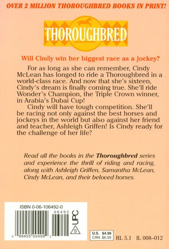 On the verge of fulfilling her dream of riding a thoroughbred in a world-class race, sixteen-year-old Cindy McLean discovers she will be competing against her friend and teacher, Ashleigh Griffin.