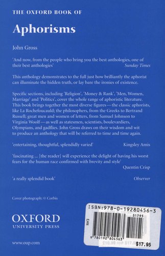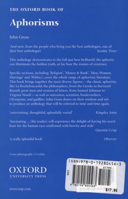 This book brings together the most diverse figures-the classic aphorists, like La Rochefoucauld; the philosophers, from the Greeks to Samuel Johnson to Virginia Woolf-as well as statesmen, scientists, boulevardiers, Olympians, and gadflies. John Gross draws on their wisdom and wit to produce an anthology that will be referred to time and time again.