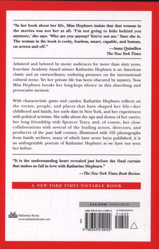 Admired and beloved by movie audiences for over sixty years, four-time Academy Award-winner Katharine Hepburn is an American classic. Now Miss Hepburn breaks her long-kept silence about her private life in this absorbing and provocative memoir.