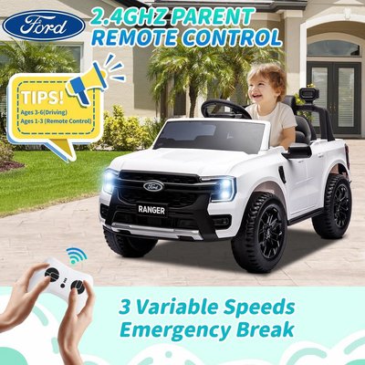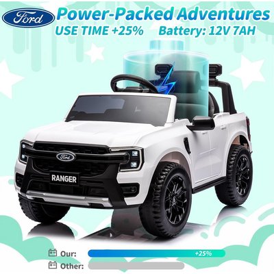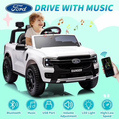 Get ready to rock the neighborhood with the Kids Electric FordRanger White Ride On Car