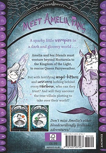 Amelia Fang is the biggest hearted vampiress you'll ever meet. In this adventure, she and her friends Florence the yeti (DON'T CALL HER BEAST), Grimaldi the Death and Prince Tangine (reformed spoiled sprout), along with her pet pumpkin Squashy, must brave the journey to the terrifying Kingdom of the Light to try to find Tangine's missing mother, Queen Fairyweather.