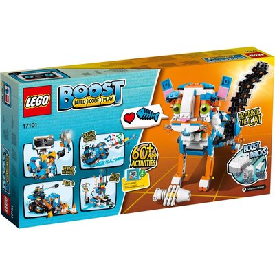 Combine the versatile LEGOŽ building system with advanced technology to boost your creativity with the awesome LEGO BOOST Creative Toolbox. Download the free tablet app to your device and follow the step-by-step instructions to build and code any of the 5 multifunctional models. Experience Vernie the Robot—a moving and talking robot; the M.T.R.4 (Multi-Tooled Rover 4)—a robust, versatile rover with 4 different tool attachments including a spring-loaded shooter; the Guitar4000—a musical instrument with pitch bend and sound effects; Frankie the Cat—an interactive pet that plays, purrs and expresses its mood; or the AutoBuilder—an automated production line that really builds miniature LEGO models! Bring your creations to life with the app’s intuitive, icon-based coding interface and complete an array of exciting activities designed for each model. This set also includes a playmat for use with specific activities, and a LEGO BOOST wall poster!