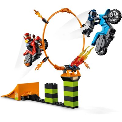 Boys and girls who like to compete will love this LEGOŽ City Stunt Competition (60299) toy playset, featuring 2 flywheel-powered motorcycles for performing amazing wheelies and high-flying stunts. Kids also get a reconfigurable launch ramp and a ring-of-fire stunt course. Just add the rider and LEGO City TV Duke DeTain minifigures for spectacular stunt action!