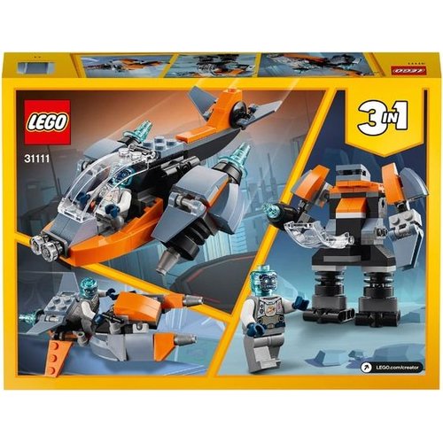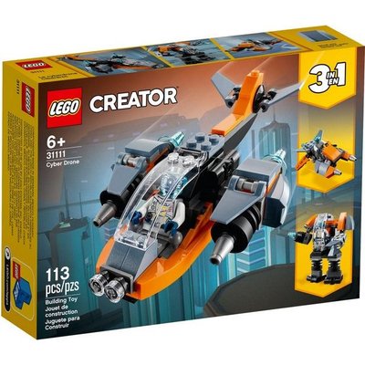 Get kids playing out action-packed adventures in space with this cool LEGOŽ Creator 3in1 Cyber Drone (31111) toy set. It features 2 rotating adjustable thrusters, posable elevators on the tail and a cockpit with an opening windshield, inspiring kids to enjoy hours of fun role play.