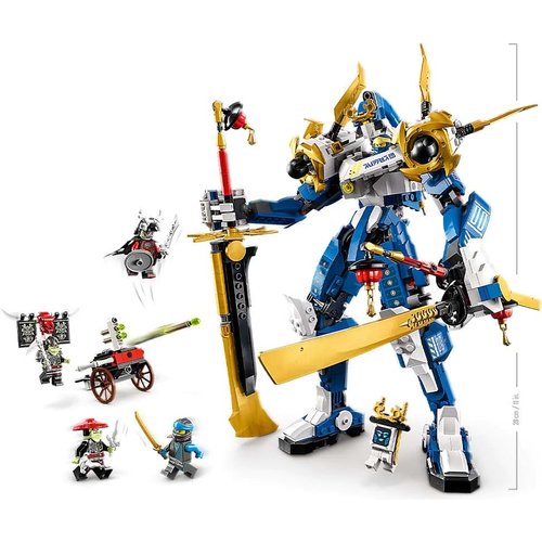 toy mech features a cockpit on its chest for Jay, a large dragon blade,