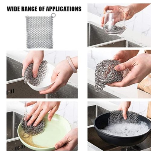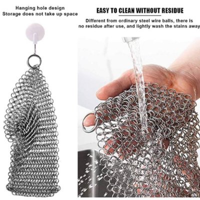 Lifespace Stainless Steel Cast Iron (Potjie) Chainmail Scrubber. Premium 316L Stainless Steel - The Lifespace cast iron potjie pot cleaner is durable and strong, ideal for cleaning all your cast iron cookware, such as potjie pots, cast iron pans, pre seasoned cast iron, skillets, Dutch ovens, camp chef griddles, waffle irons and so on. Maintains The Quality & Keeps the Surface Smooth - Each chainmail ring is designed with the highest quality food grade stainless steel smooth enough for pots and pans. Protect the Seasoning of Your Pan - Handcrafted with smooth edging for strength and comfort to protect the seasoning of your pans. Lightweight and convenient, the perfect cleaning tool for your braai, grilling & BBQ utensils and outdoor cooking accessories. Suitable for All Kinds of Cast Iron Cookware - the Lifespace Cast Iron Scraper can be used on potjie pots, cast iron pans, frying pans, cast iron skillets, baking pans, pre-seasoned pans, Dutch ovens, cast iron griddle pans, woks, casseroles and grill scraper and tongs. Easy to clean - The Lifespace Cast Iron Chainmail Scrubber cleans up in seconds with warm water. No soap or harsh detergent needed, protecting your pan's seasoning. Also, dishwasher safe.