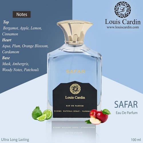 The Louis Cardin Safar fragrance opens with a refreshing burst that invites curiosity and exploration. As it settles, a harmonious balance of enchanting notes unfolds, creating a unique scent that lingers beautifully throughout the day. This delightful perfume is designed for those who appreciates life’s little adventures and wishes to carry a piece of that wanderlust with them everywhere.