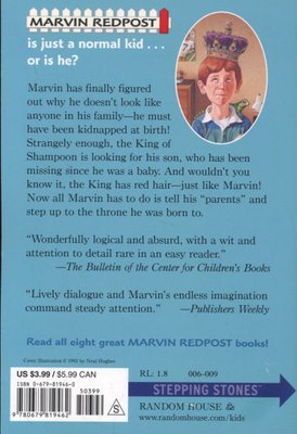 Illus. in black-and-white. Marvin Redpost has finally figured out why he doesn't look like anyone in his family. He's not really Marvin Redpost--he's Robert, the lost prince of Shampoon!